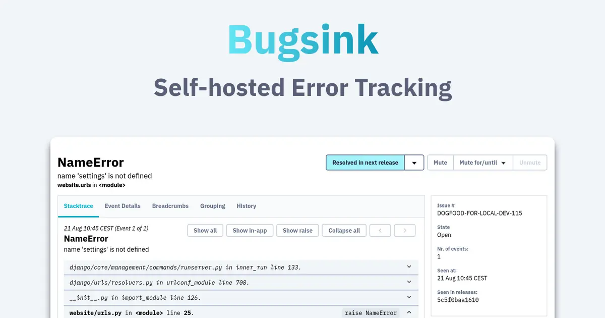 Self-hosted error tracking for developers. Full stacktraces, local variables, Sentry SDK compatibility, and predictable costs at any scale.